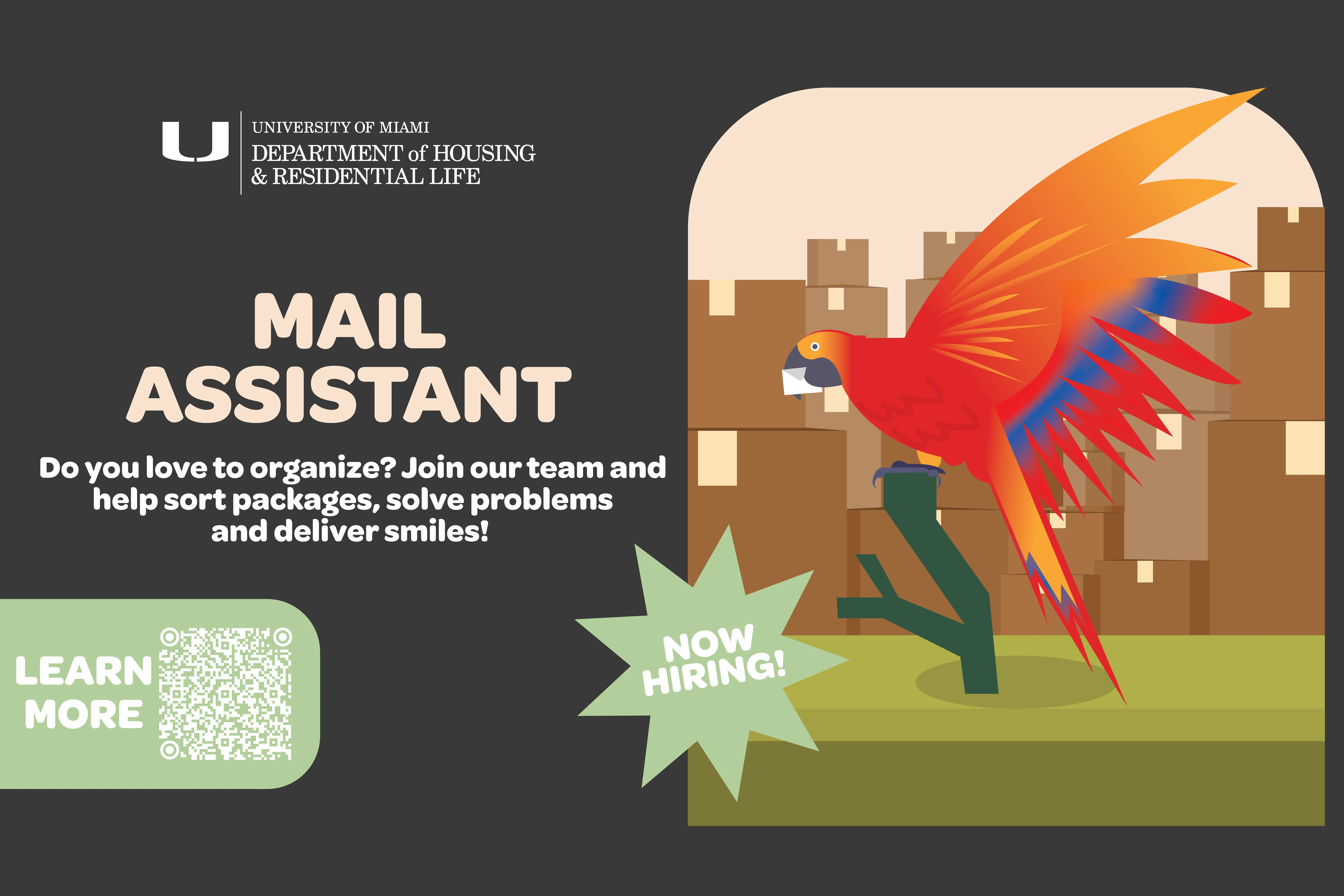 The student Mail Assistant is a student position reporting to the Residential Operations Manager. The mail center is located inside the main office of University Village. The core functions of this position are mail and package sorting and processing, basic data entry, problem-solving, administration, and student support.